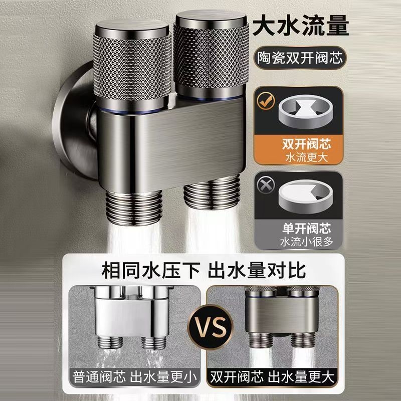 不锈钢分流双控角阀一进二出三通分水阀水龙头一分二分水器带开关