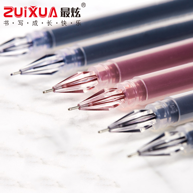 最炫中性笔高颜值简约学生签字笔黑色蓝色红色大容量巨能写中性笔