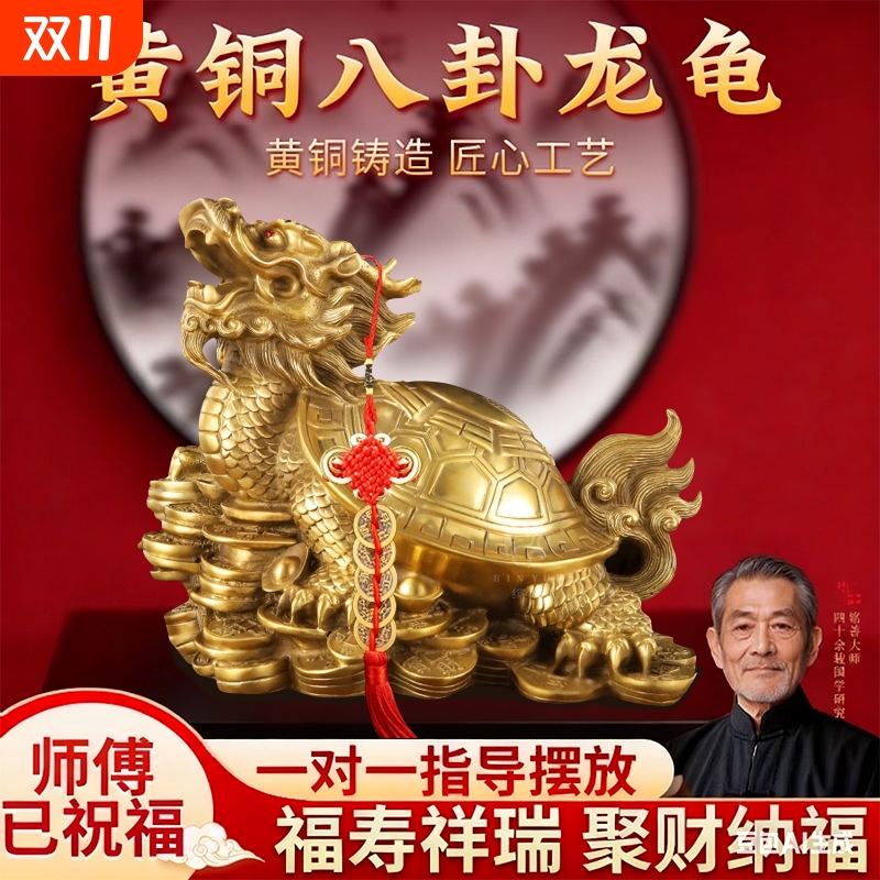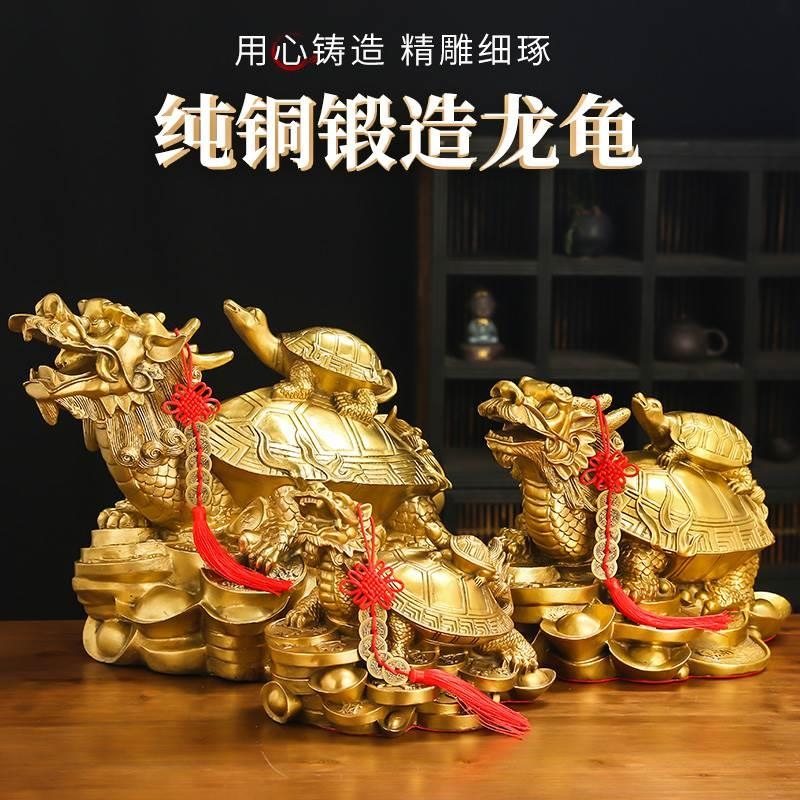 黄铜龙龟摆件母子龙头龟八卦金钱龟家居办公室客厅装饰工艺品摆设