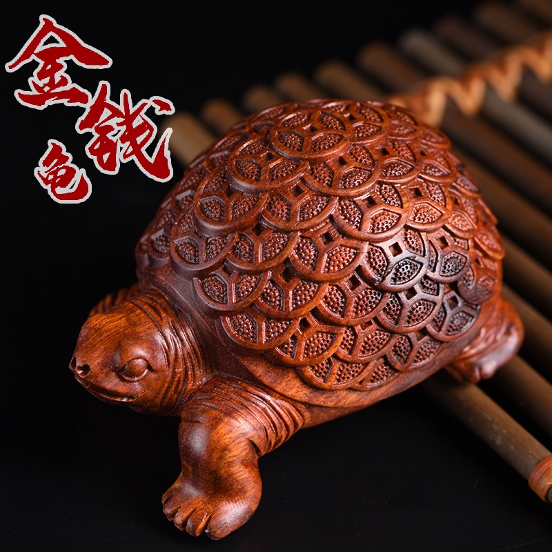 福瑞堂绿檀木金钱龟茶宠摆件把玩