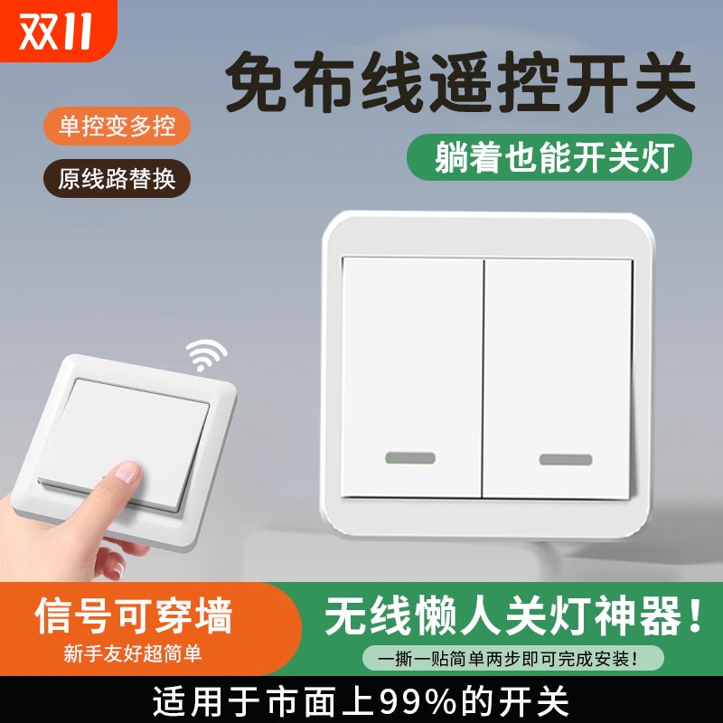 无线遥控开关双控免布线面板家用电灯远程随意贴智能220v照明神器
