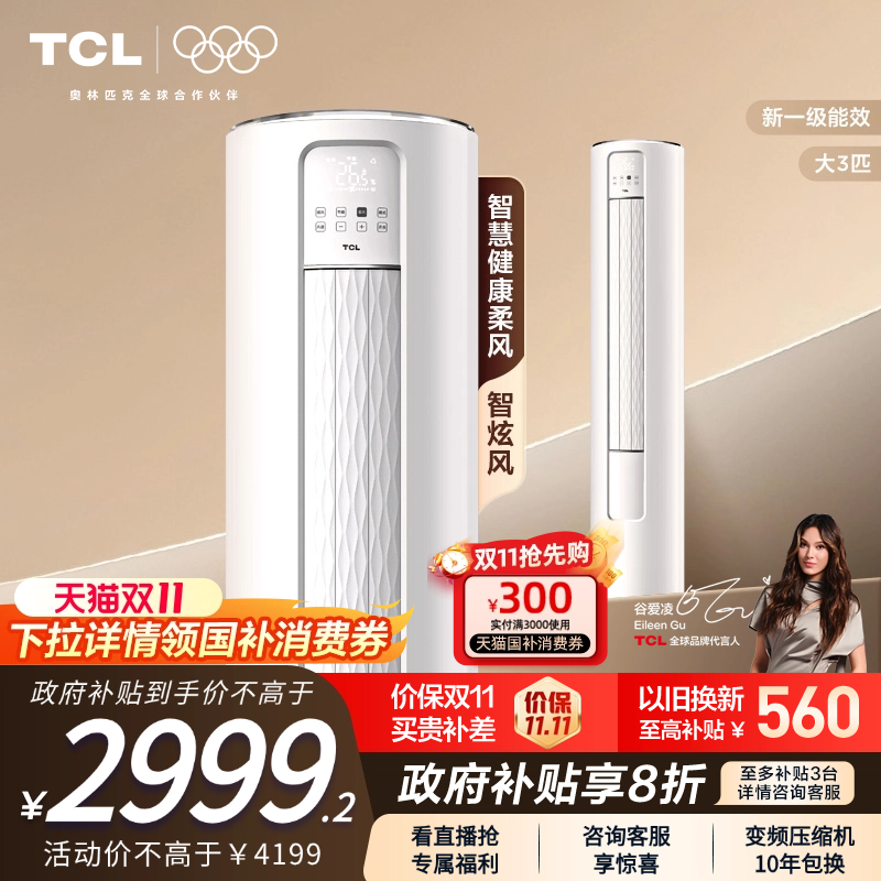 【政府补贴】TCL空调大3匹柜机柔风新一级自清洁冷暖变频立式
