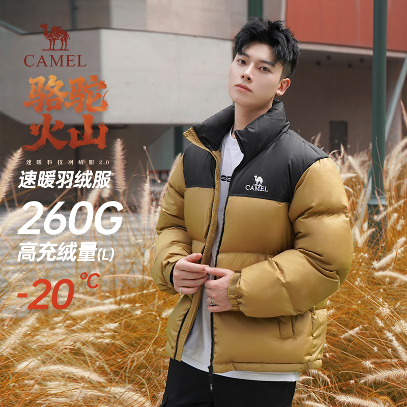 骆驼火山PRO鹅绒服男秋冬季2025新款男装连帽情侣面包羽绒服外