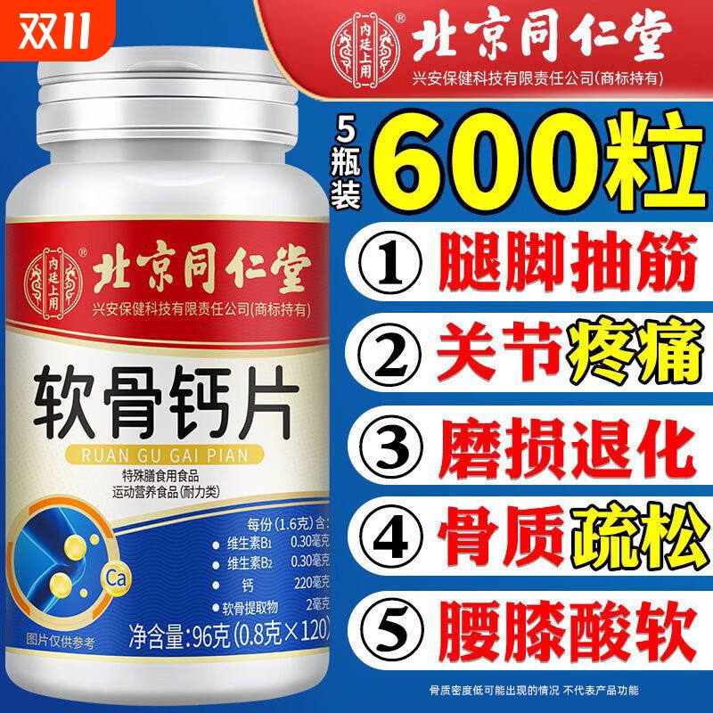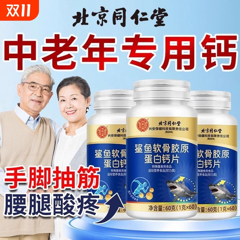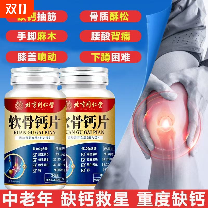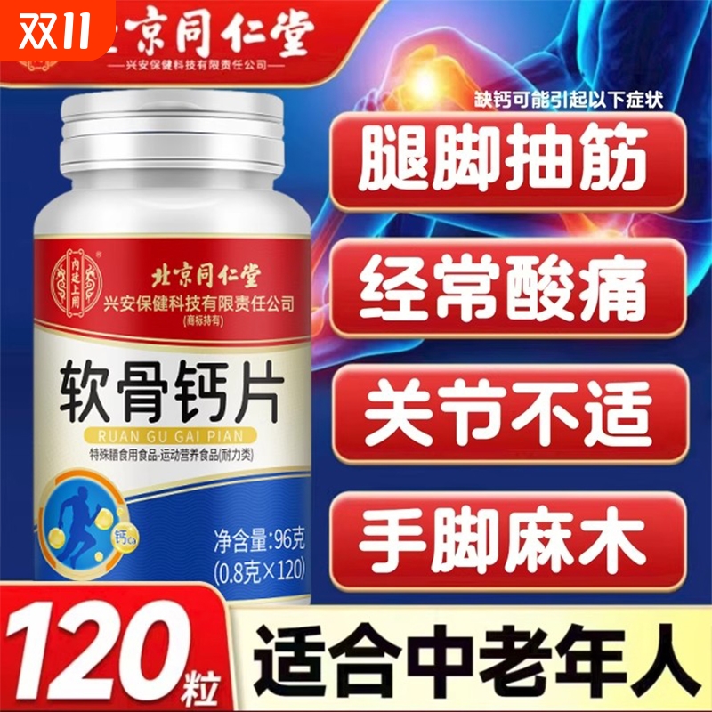 北京同仁堂软骨钙片中老年人腿抽筋疼骨质疏松缓解关节痛官方正品