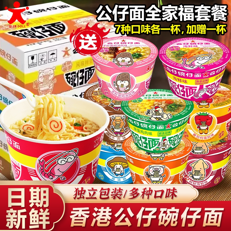 香港公仔面迷你公仔碗仔面整箱装海鲜味泡面小杯桶装方便面湾仔面
