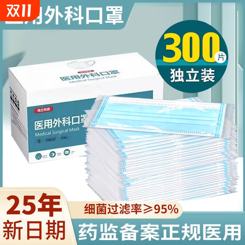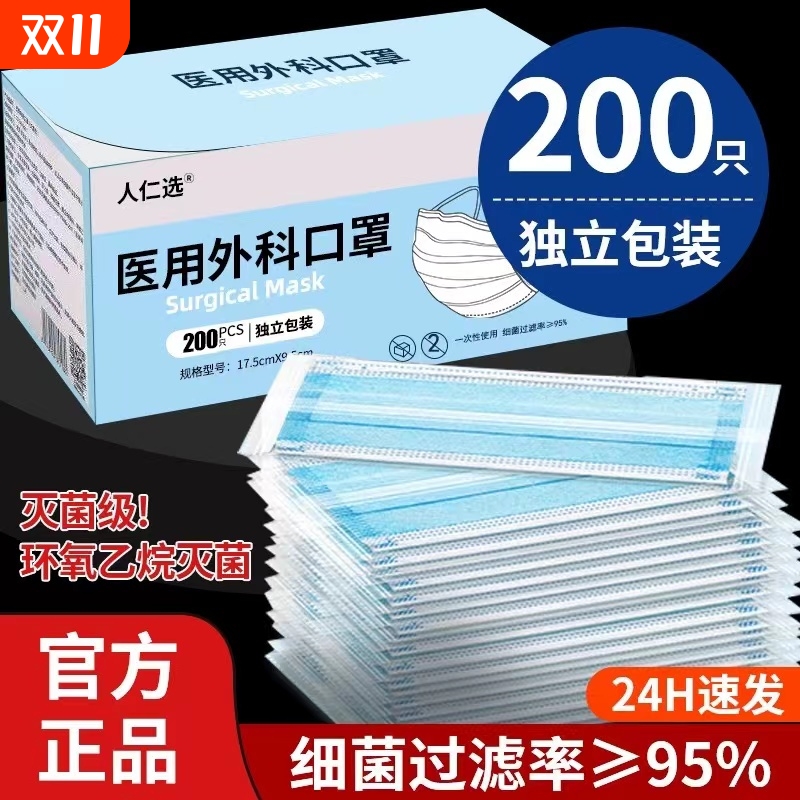 医用外科一次性口罩医疗口罩三层正品正规蓝白色成人独立包装灭菌