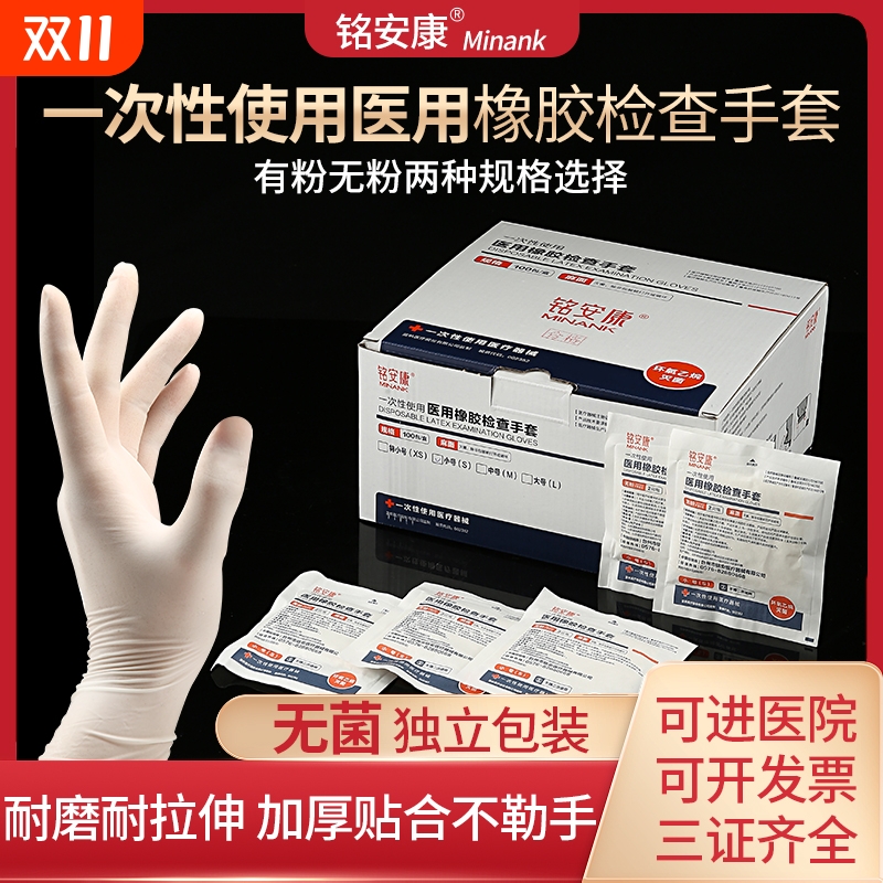 医用乳胶手套无菌一次性医疗橡胶医院检查外科手术医护用单独包装