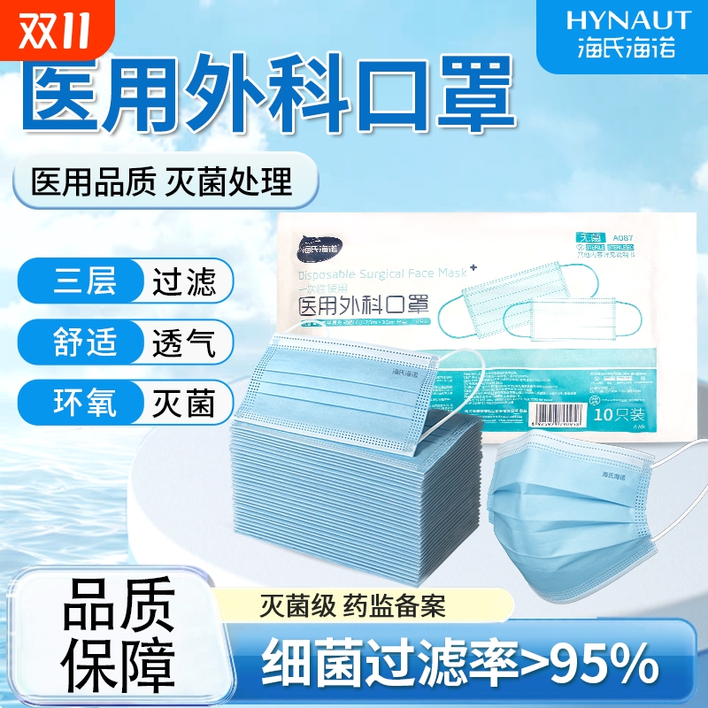 海氏海诺医用外科口罩一次性医疗三层防护专用灭菌级单独包装呼吸