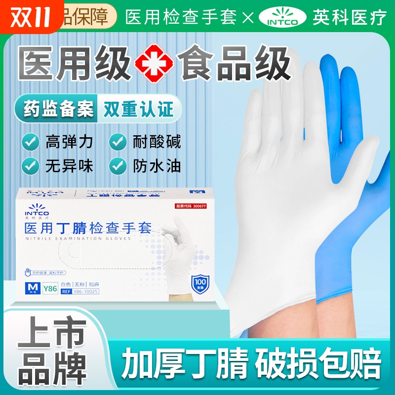 英科白色医用丁腈手套一次性丁晴医疗外科检查食品级专用乳胶橡胶