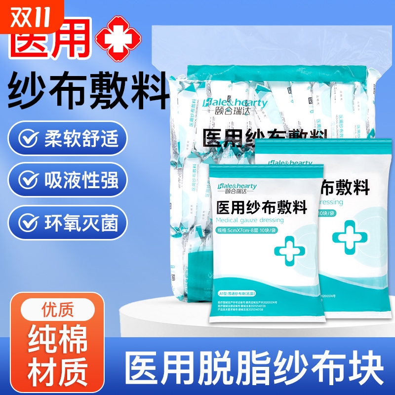医用无菌纱布块多型号脱脂湿敷棉片一次性医疗消毒伤口包扎敷料