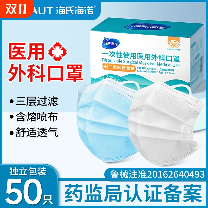 海氏海诺医用外科口罩无菌一次性三层防护防尘轻薄透气医疗口罩