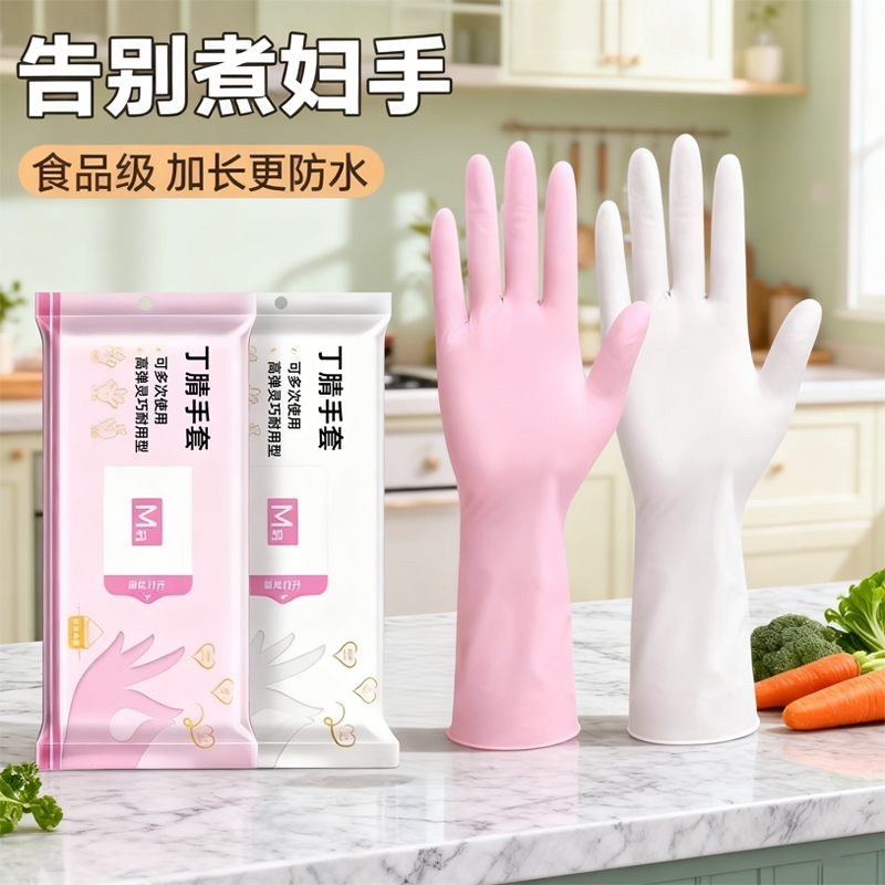 丁腈手套加长耐用一次性洗碗加厚防油橡胶劳保家务厨房清洁做饭女
