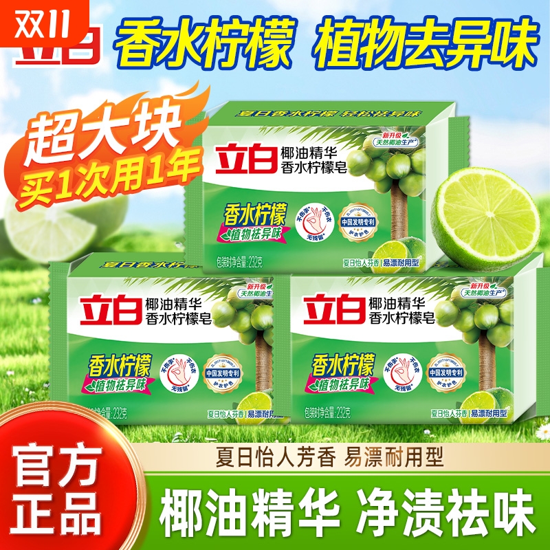 立白椰油精华香水柠檬皂232g大块洗衣皂家用肥皂天然不伤手去污渍