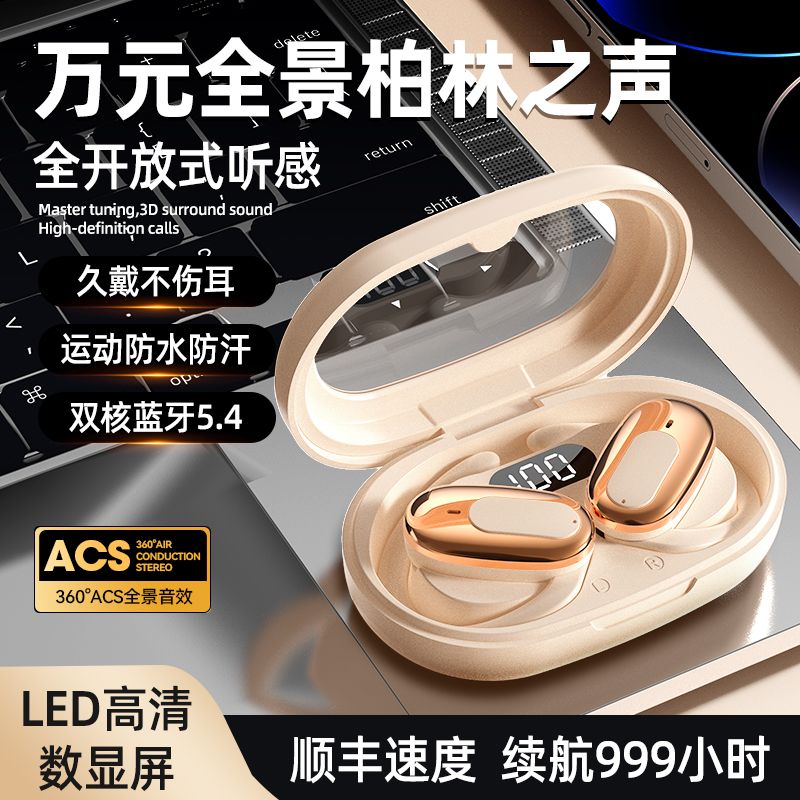 2024新款气骨传导蓝牙耳机耳挂式不入耳超长续航运动跑步久戴不痛