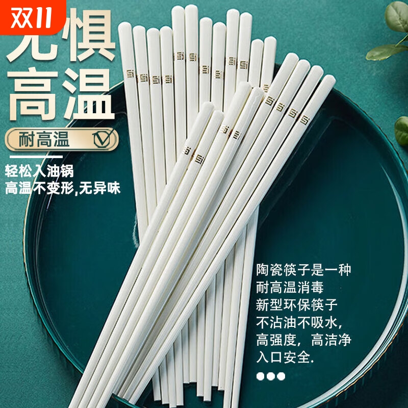 景德镇陶瓷筷子家用高档抗菌防霉轻奢高级感防滑耐高温合金不发霉