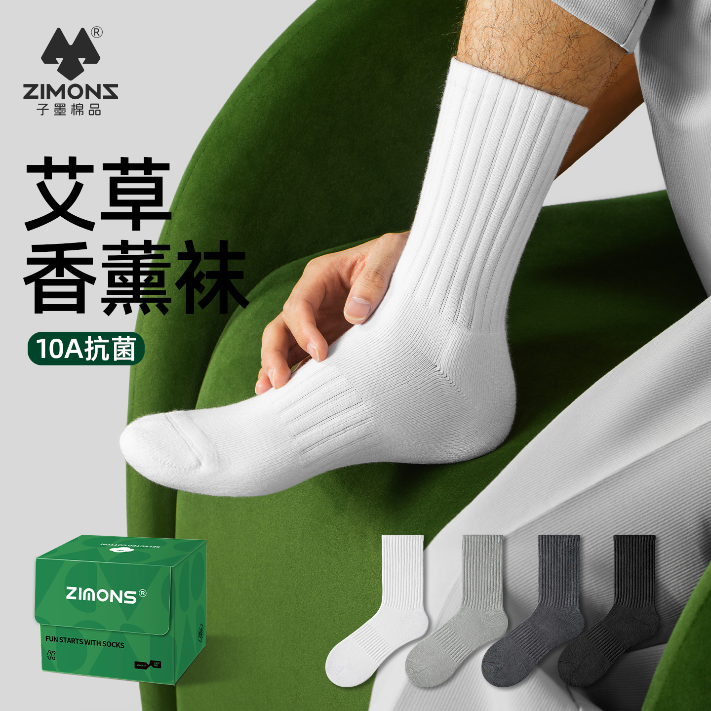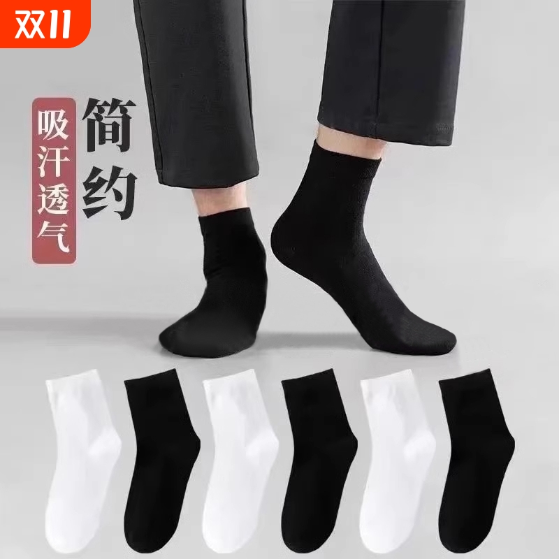 20双黑白袜子男款中筒秋冬青少年运动防臭男士纯色长袜黑色新疆棉