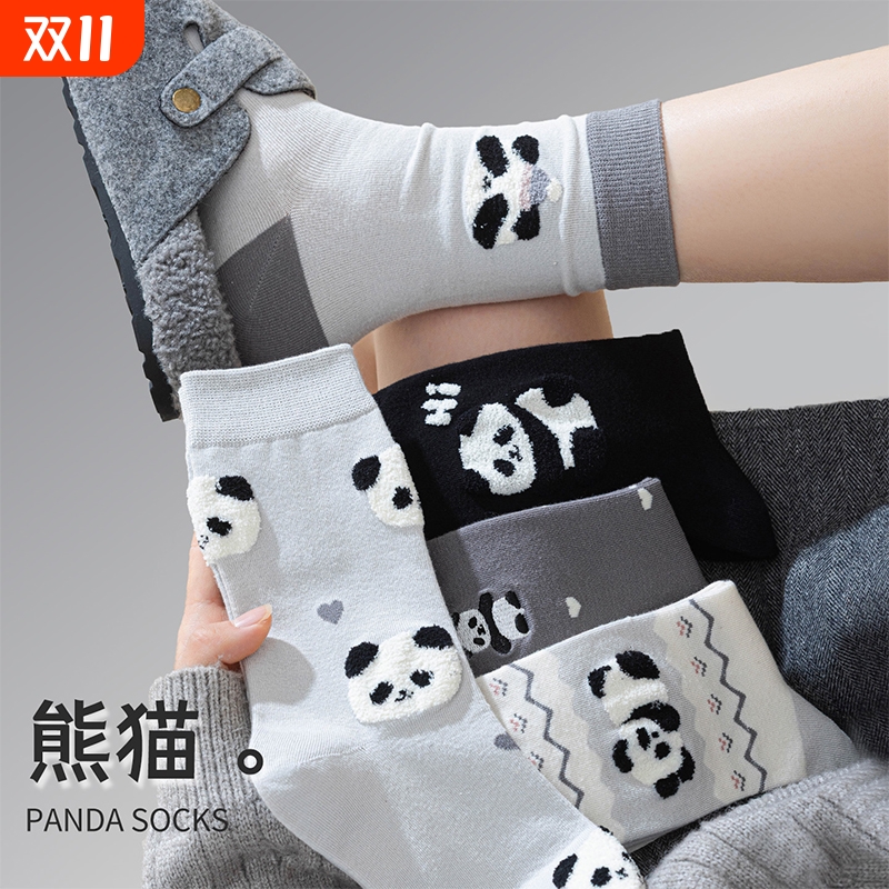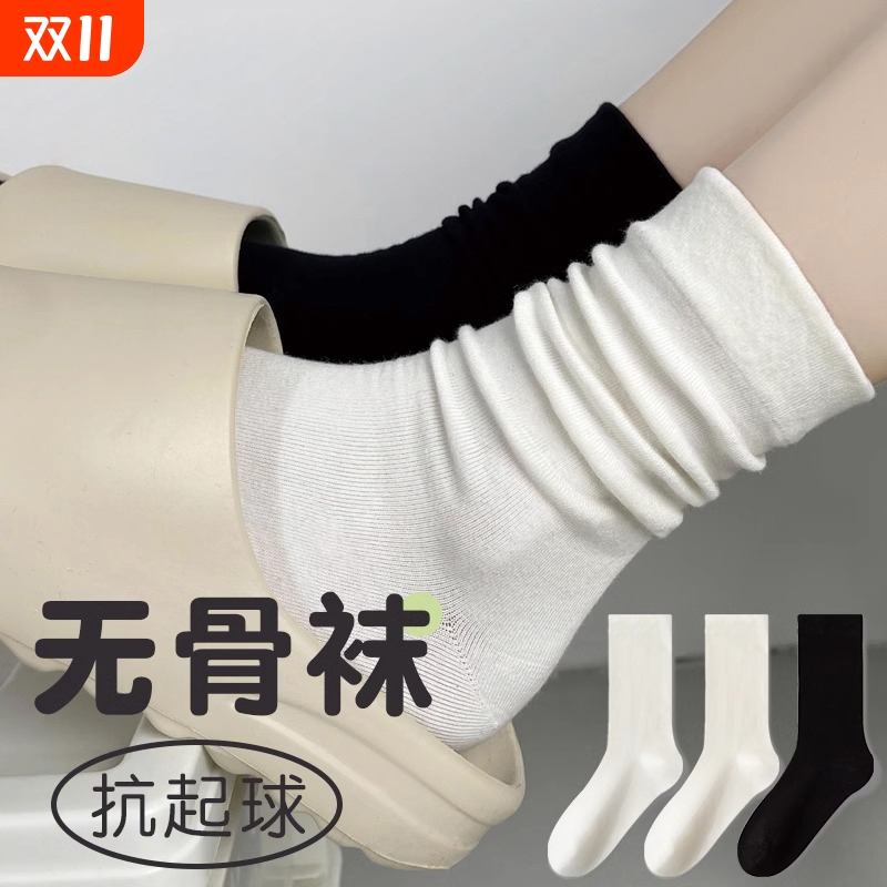 caramella纯色黑白潮流极简风中短筒袜子搭配类黑白秋冬中筒