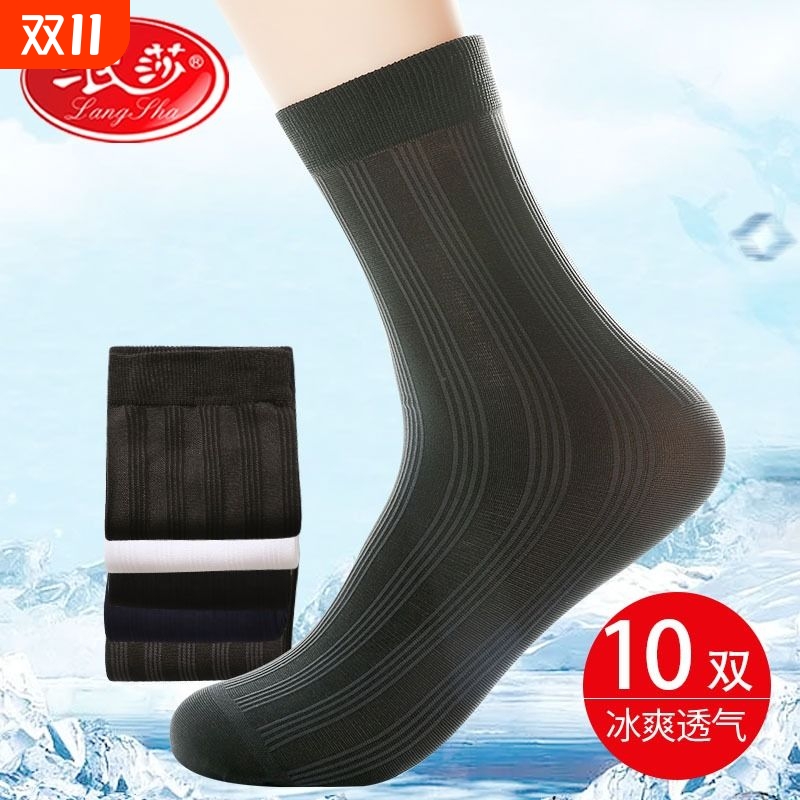 浪莎短丝袜超薄款男士中筒黑白色透气短袜夏季商务冰丝对对男袜子