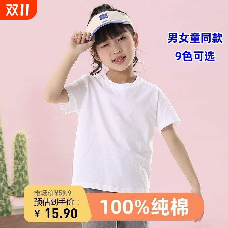 男童圆领短袖T恤2024夏季纯棉纯白色黑儿童半袖宝宝打底中大童女