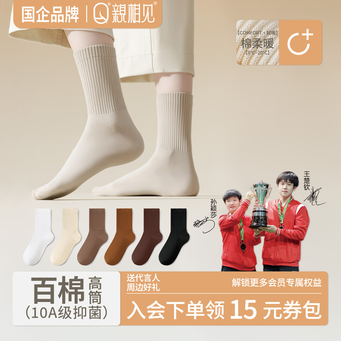 亲相见袜子女纯棉抗菌防臭中筒袜