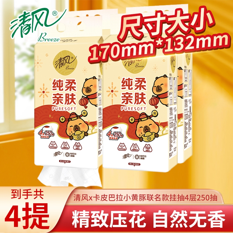 清风纯柔亲肤挂抽4提大包抽纸悬挂式挂抽纸巾家用厕纸卫生纸家用