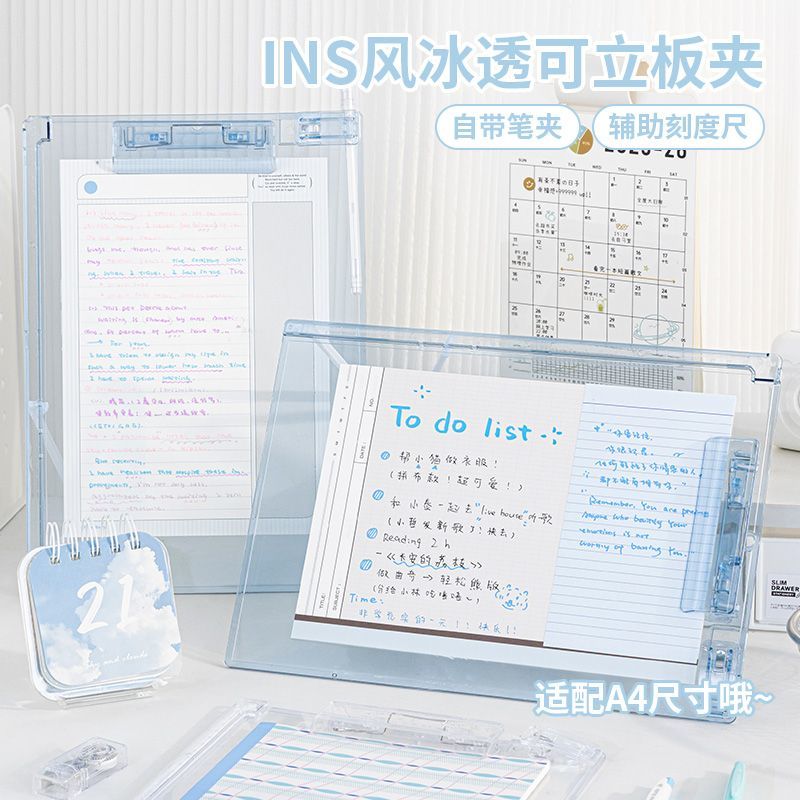 清透可立文件夹A4加厚板夹INS试卷垫板学生用考试写字板