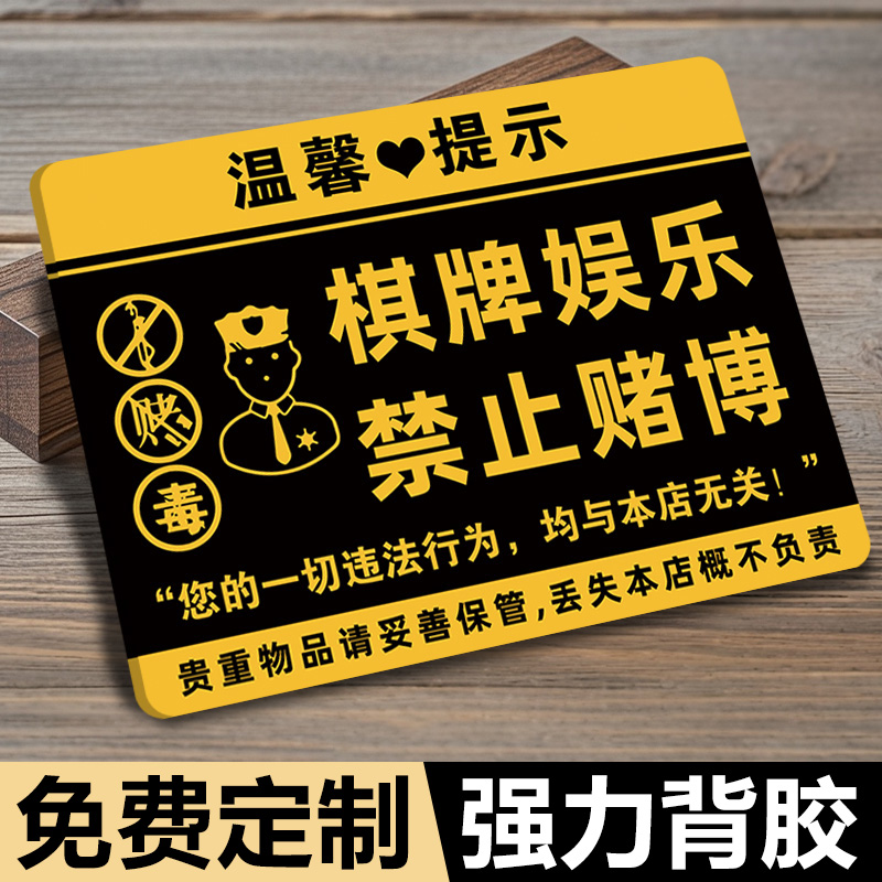 棋牌室警示标语禁止黄赌毒标识标牌警方提醒严禁赌博警示牌休闲仅