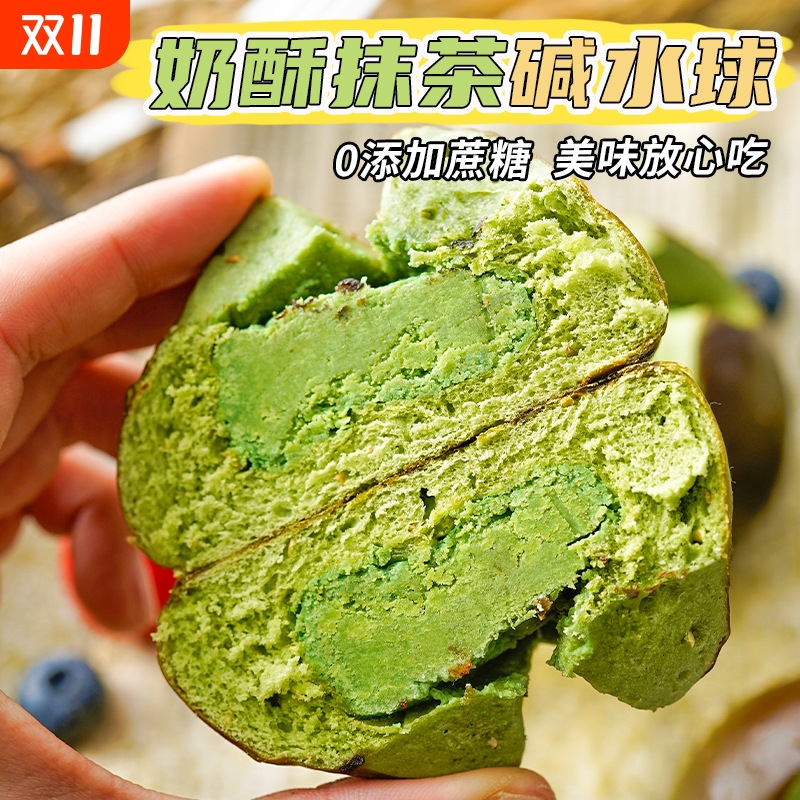 无加蔗糖抹茶草莓味奶酥碱水球夹心面包约75g/袋早餐零食代发