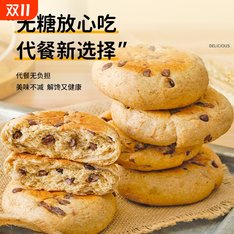 无糖红豆餐包糕点心约65g/袋早代餐零食品下午茶饱腹便携代发