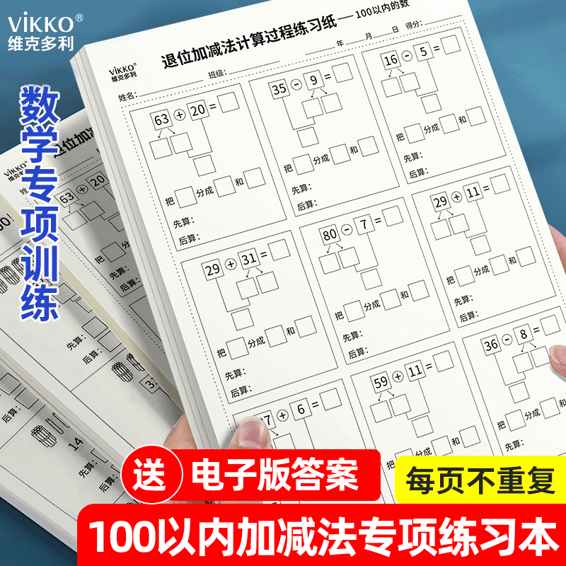 一年级上下册100以内加减法口算天天练加减法横式竖式专项练习本口