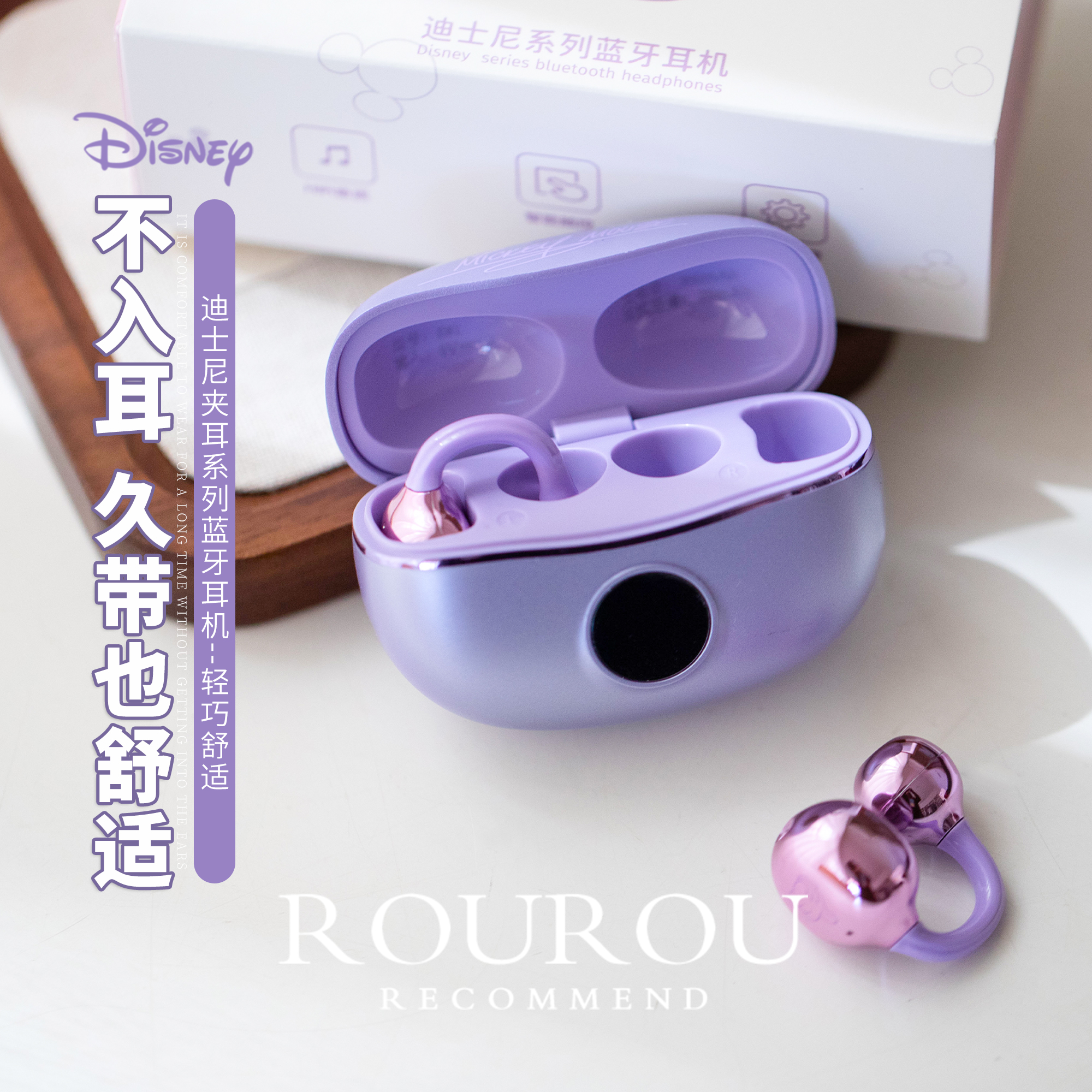 不入耳更舒适!迪士尼蓝牙耳机夹耳数显高颜值高音质长续航隔音