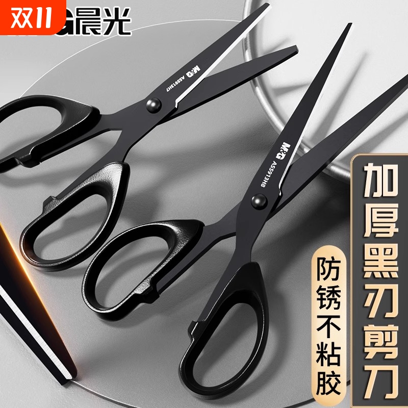 晨光黑刃剪刀办公高颜值家用锋利不粘胶耐磨不锈钢剪刀儿童剪纸美工大
