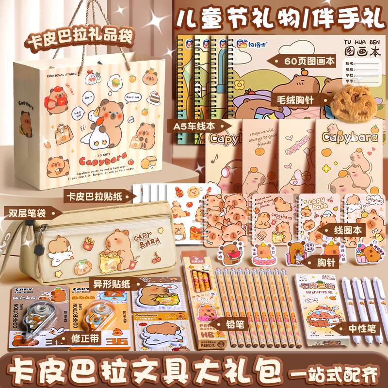 得力卡皮巴拉文具套装礼盒毕业礼物幼升小入学礼物一年级小学生学习用