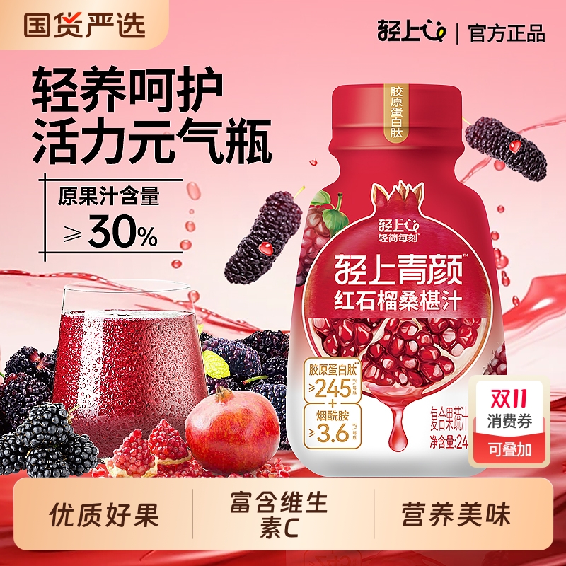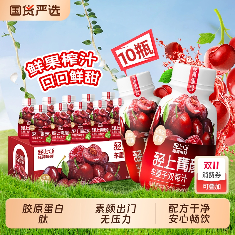 轻上车厘子双莓汁果蔬汁饮品樱桃汁果汁饮料小瓶整箱装瓶装树莓