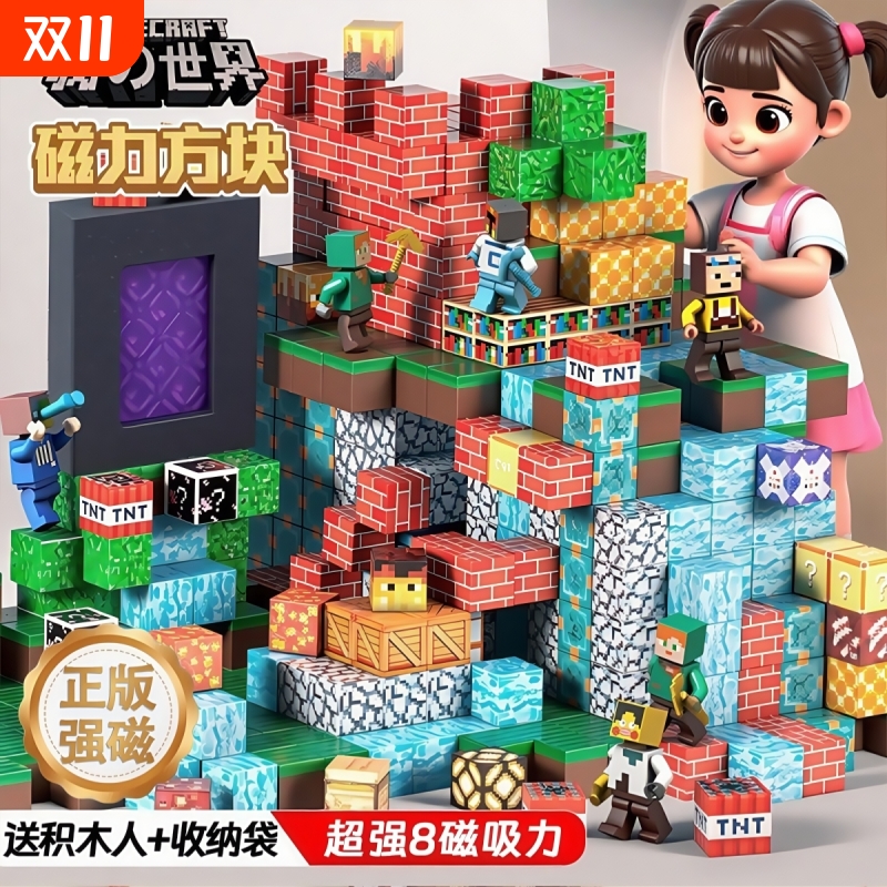 我的世界磁力方块全套正版拼图益智拼装磁吸积木玩具男女孩礼物