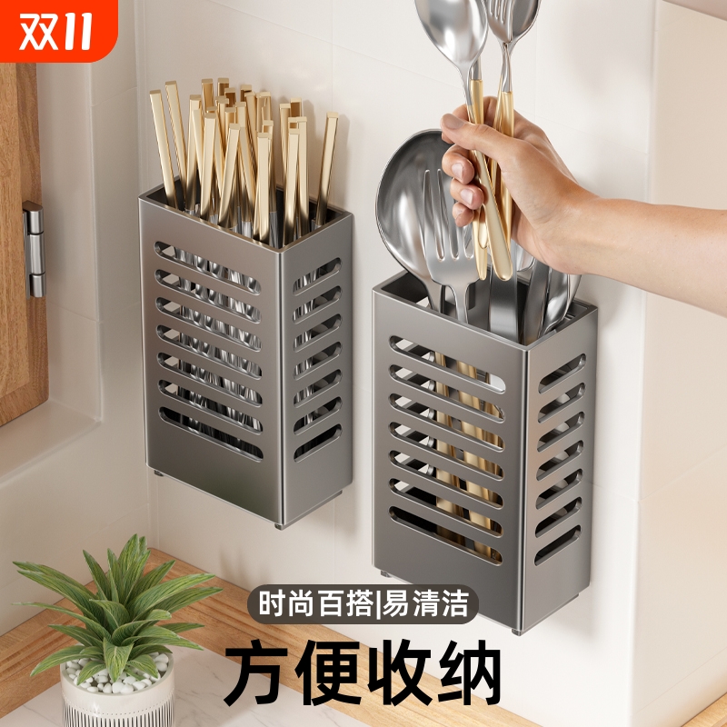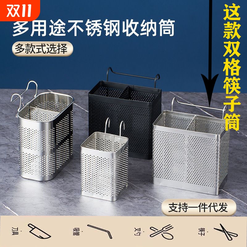厨房不锈钢筷子筒笼篓置物架餐具筷笼子放收纳盒壁挂沥水免打孔