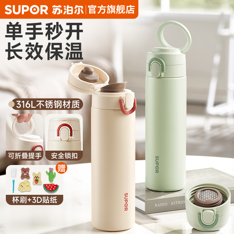 苏泊尔保温杯316L不锈钢便携男女带提环新款水杯子学生高颜值车载