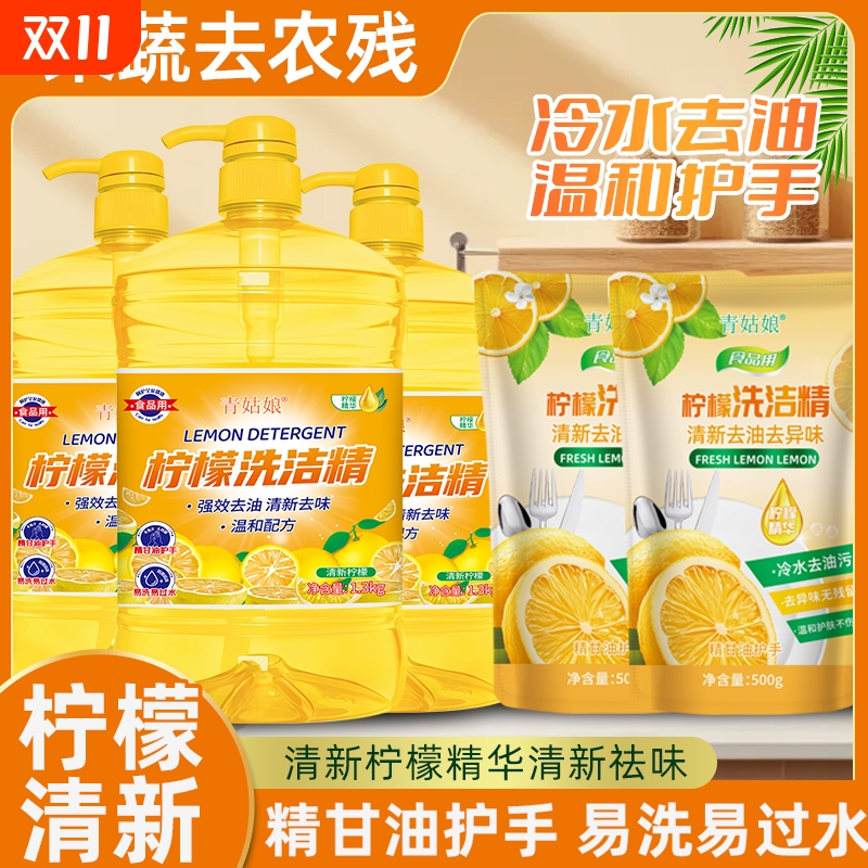洗洁精柠檬清香冷水轻松去餐具净清洁餐具家庭装家用洗碗厨房果蔬