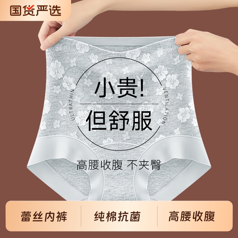 寻棉记高腰收腹蕾丝纯棉抗菌内裤