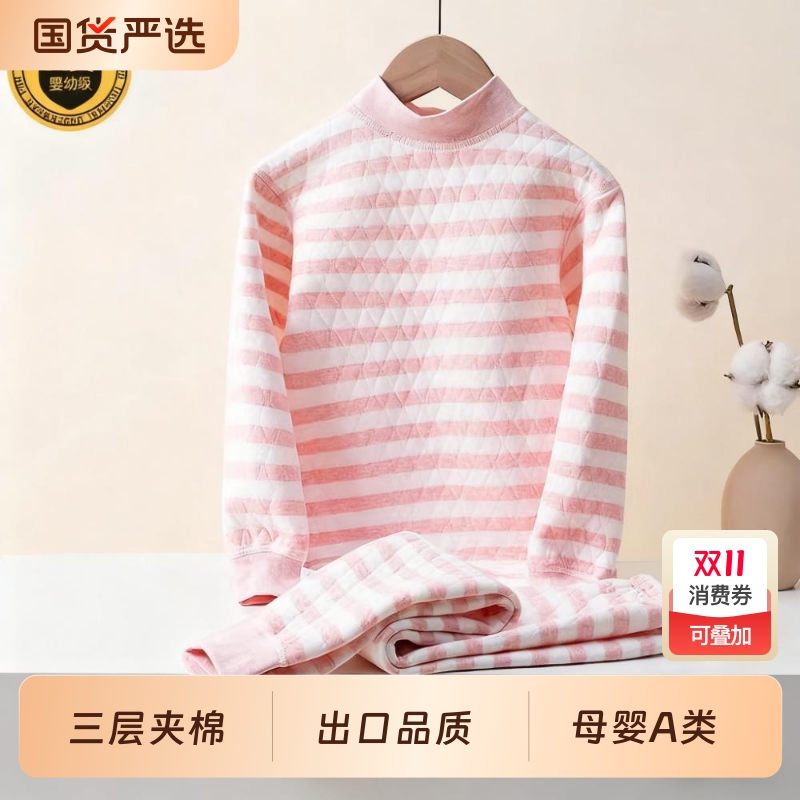 出口品质儿童保暖内衣套装三层夹棉男女童秋衣秋裤中大童冬季加厚