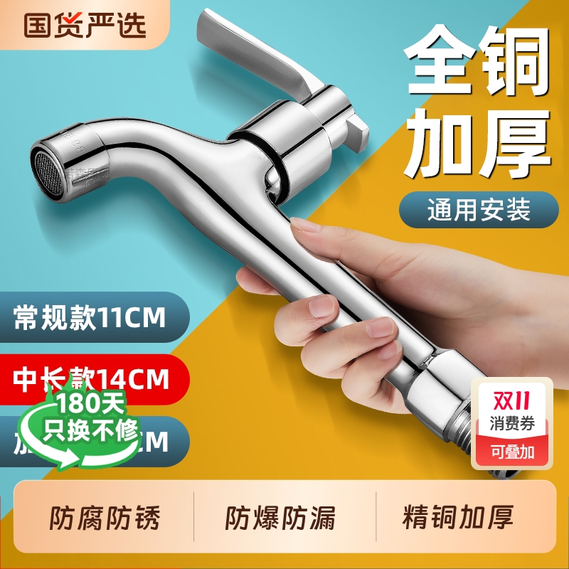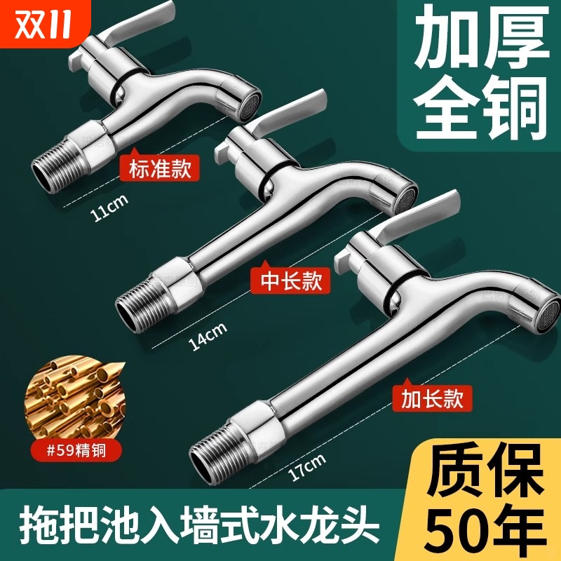304不锈钢龙头洗衣机龙头加长加厚家用入墙4分水龙头快开单冷水嘴
