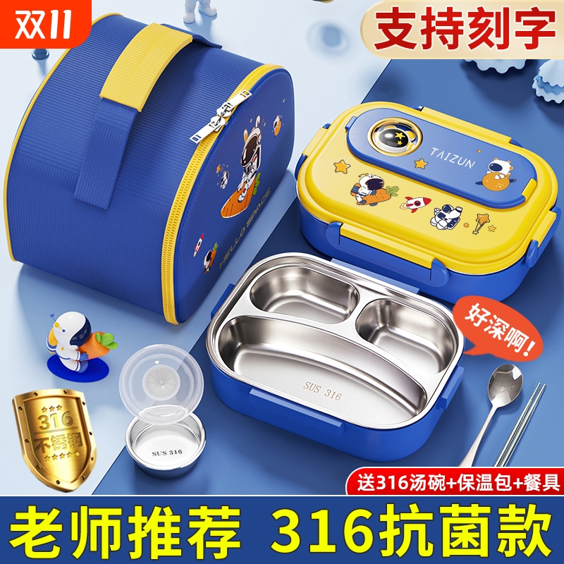 小丸子儿童保温饭盒初中小学生上学专用一年级女孩分格不锈钢餐盒