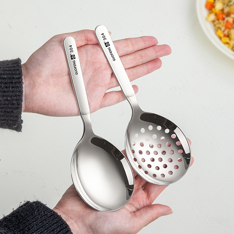 304不锈钢分餐勺子家用大饭勺汤勺漏勺酒店专用公用勺金色大号