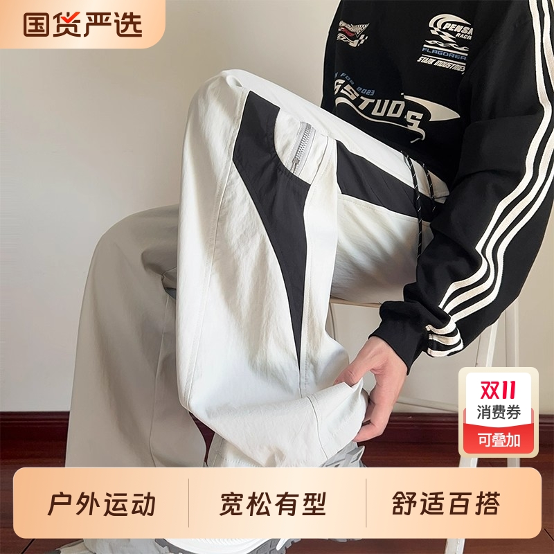 美式撞色运动工装裤男春秋季新款直筒宽松冲锋裤子男款运动裤