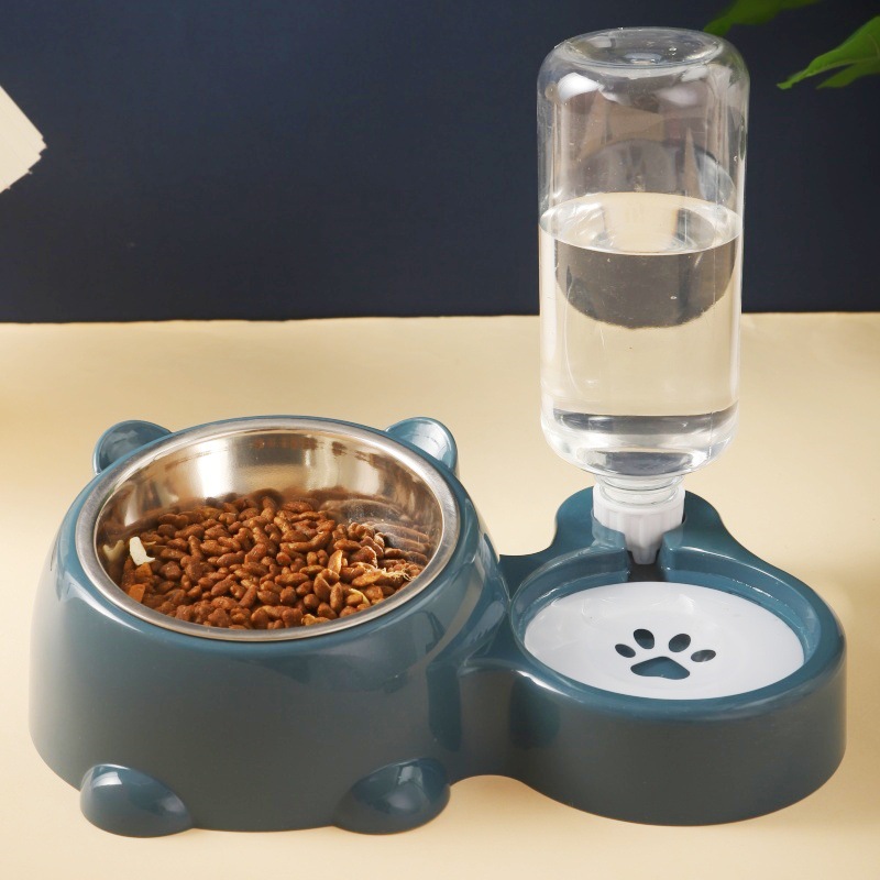 猫碗斜口狗碗猫咪饭盆双碗不锈钢自动续水宠物碗二合一饮水喂食器
