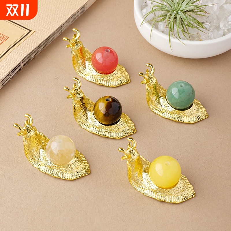 天然水晶球小蜗牛香插摆件粉水晶紫水晶圆球创意蜗牛动物摆件