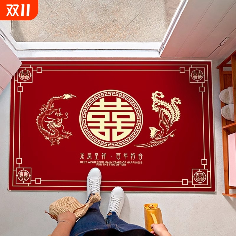 结婚地垫红色喜庆入户门垫进门喜字新婚入门脚垫子门口入户门地毯