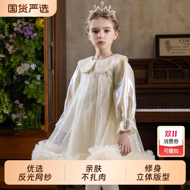 女童春秋连衣裙儿童富家千金感公主裙小女孩花童婚礼生日绝美礼服