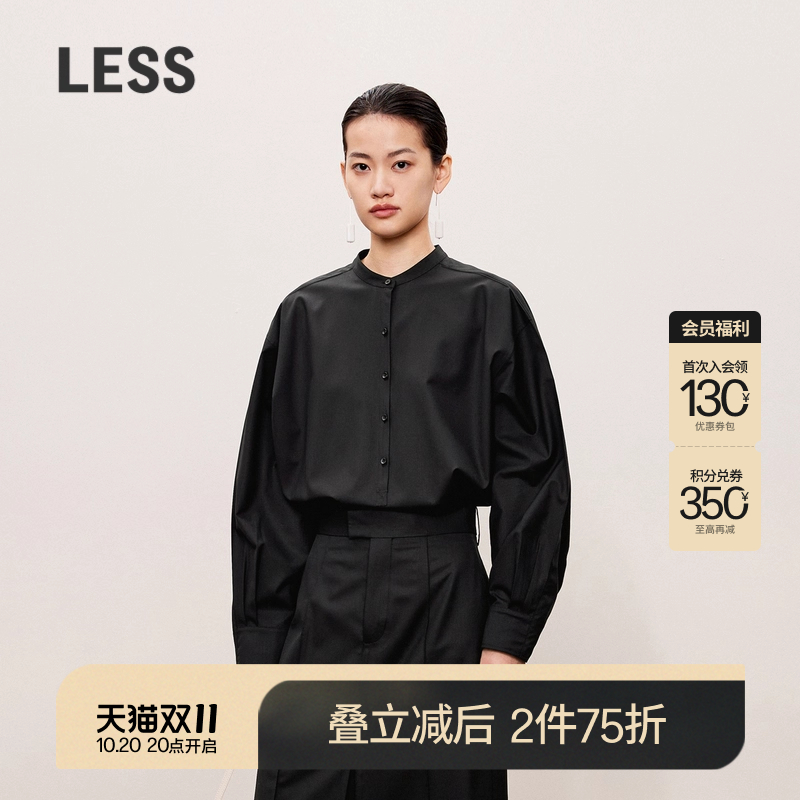 LESS绵羊毛立领衬衫女套头半开襟