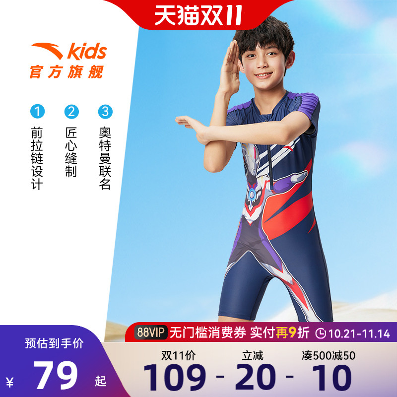 奥特曼泳装安踏儿童泳衣夏2025分体泳泳裤套装防晒抗氯宝宝泳衣潮